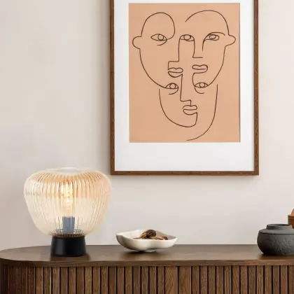 Beschreibung Brilliant Kaizen Tischlampe Glas Metall Schwarz Beige | 250mm - Geeignet für 1x E27