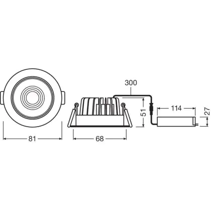 Beschreibung Ledvance LED Deckenstrahler Einbau Silber 8W 670lm 36D - 840 Kaltweiß | Ausschnitt 68mm - Dimmbar