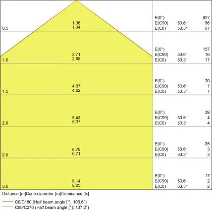 Die Farbtemperatur dieser LED ist Tageslichtweiß mit einem Wert von 6.500 K. Diese Lichtfarbe enthält viele Blau-Anteile und erzeugt ein kühles, bläuliches Licht. Es wird insbesondere dort eingesetzt, wo wenig natürliches Tageslicht herrscht, wie zum Beispiel Industrie- und Lagerhallen.