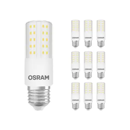 Die Mehrfachpackung 10x Osram Special T Slim LED E27 Klar 7.3W 806lm - 827 Extra Warmweiß | Dimmbar - Ersatz für 60W ist eine effiziente E27 LED-Lampe und der perfekte Ersatz für Ihre konventionellen 60W Lampen mit E27-Sockel. Zudem strahlt sie Licht in der Farbtemperatur 2700K - Extra Warmweiß aus und punktet durch eine lange Lebensdauer.