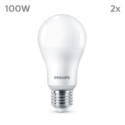 Die Mehrfachpackung 2x Philips Glühbirne LED E27 Birne Matt 13W 1521lm - 827 Extra Warmweiß ist eine effiziente E27 LED-Lampe und der perfekte Ersatz für Ihre konventionellen W Lampen mit E27-Sockel. Zudem strahlt sie Licht in der Farbtemperatur 2700K - Extra Warmweiß aus und punktet durch eine lange Lebensdauer.