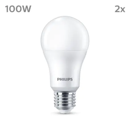 Die Mehrfachpackung 2x Philips Glühbirne LED E27 Birne Matt 13W 1521lm - 840 Kaltweiß ist eine effiziente E27 LED-Lampe und der perfekte Ersatz für Ihre konventionellen W Lampen mit E27-Sockel. Zudem strahlt sie Licht in der Farbtemperatur 4000K - Kaltweiß aus und punktet durch eine lange Lebensdauer.