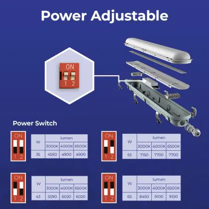 Noxion LED Feuchtraumleuchte Poseidon V3.0 35-65W 4550-9100lm - 830-865 CCT | 150cm - Durchgangsverdrahtung (5x2.5mm2)