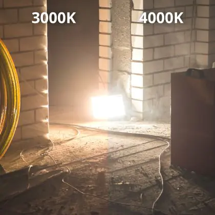 Das LED-Flutlicht kommt mit der Farbtemperatur 4000K - Kaltweiß daher. Als Faustregel gilt: Je höher der Kelvinwert, desto natürlicher wirkt das Licht, je geringer desto mehr Rotanteile hat es.