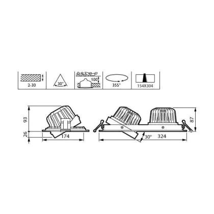 Beschreibung Philips Led-Spot Greenspace Accent Gridlight Aluminium Weiß 60W 3900lm 36D - 930 Warmweiß | 154mm - IP20 - Höchste Farbwiedergabe - Dali Dimmbar