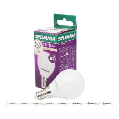 Die Sylvania ToLEDo Ball E14 Matt zeichnet sich durch einen geringen Stromverbrauch von nur 4 Watt aus. Dies ermöglicht Ihnen erhebliche Energieeinsparungen. Die LED hat einen E14-Sockel, sowie eine P45-Ballform, und spendet warmes Licht mit einer Farbtemperatur von 2.700 Kelvin.