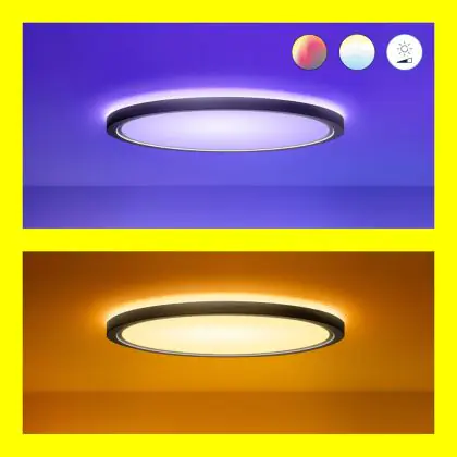 Die WiZ Smart LED Deckenleuchte SuperSlim Schwarz 22W 2600lm - 922-950 Abstimmbares Weiß + RGB | IP20 - Höchste Farbwiedergabe - Wifi Dimmbar strahlt Licht in der Farbtemperatur 2200K - 6500K Tunable White aus und punktet durch eine lange Lebensdauer. Als Bulkhead kann diese moderne Leuchte sowohl an der Wand, als auch an der Decke montiert werden.